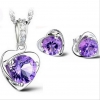 Love Heart Silver Necklace And Earrings Set Costume Jewellery Crystal Diamante Rhinestones