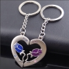 Love Heart With Roses Couples Keyrings Lovers Puzzle Keyring Silver Key Chains