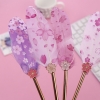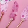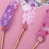 Luxury ballpoint gel pens with bird feather shaped top and pink cherry blossom flowers print