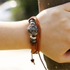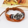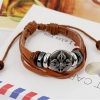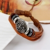 Metal Shield Flower Brown Adjustable Leather Wristband Bracelet Mens Womens Teen