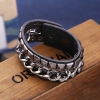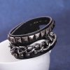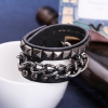 Metal Studs Silver Chain Black Adjustable Leather Wristband Bracelet Mens Womens