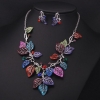 Multi-colour Diamante Leaves Silver Necklace Earrings Set Costume Jewellery