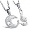 Very cute silver moon and music note puzzle shaped lovers necklace set