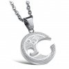 Music Note And Moon Lovers Pendant Couples Puzzle Stainless Steel Necklace Set