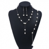 Pearls Silver Necklace And Earrings Set Costume Jewellery Crystal Diamante Rhinestones