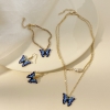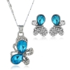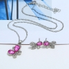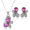 Pink Blue Butterfly Silver Necklace And Earrings Set Diamante Costume Jewellery