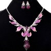 Purple Pink Fuchsia Flower Petals Silver Necklace Earrings Set Costume Jewellery