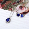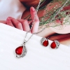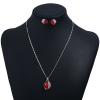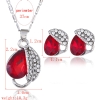 Red Blue Black Rhinestones Water Droplet On Leaf Silver Necklace Earrings Set