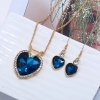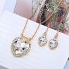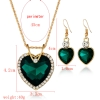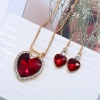 Red Rhinestones Love Heart Pendant Gold Necklace Earrings Set Costume Jewellery