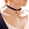 Retro Black Suede Lace Choker Necklace With Copper Clover Flower Pendant Charm
