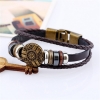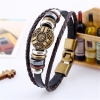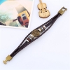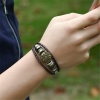 Retro Bronze Button Beads Braided Leather Wristband Bracelet Mens Womens Teens