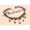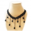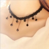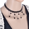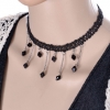 Retro Fashion Black Suede Lace Choker Necklace With Rhinestone Pendants Charm