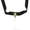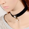 Retro Style Black Suede Choker Necklace With White Pearl Shaped Pendant Charm