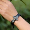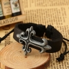 Retro Style Cross Black Adjustable Leather Wristband Bracelet Mens Womens Teens