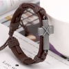 Retro Style Cross Brown Adjustable Leather Wristband Bracelet Mens Womens Teens