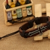 Retro Style Cross Brown Adjustable Leather Wristband Bracelet Mens Womens Teens