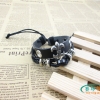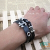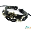 Retro Style Lily Flower Black Adjustable Leather Wristband Bracelet Mens Womens