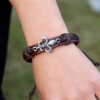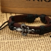 Retro Style Lily Flower Brown Adjustable Leather Wristband Bracelet Mens Womens