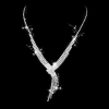 Scarf Shape Crystal Diamante Silver Necklace And Earrings Set Costume Jewellery