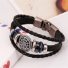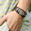 Shield Beads Black Braided Adjustable Leather Wristband Bracelet Mens Womens