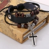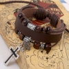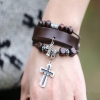 Silver Cross Black Adjustable Leather Wristband Bracelet Mens Womens Boys Girls