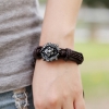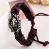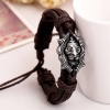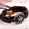 Silver Lion Head Black Adjustable Leather Wristband Bracelet Mens Womens Teens