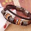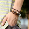 Silver Rings Brown Leather Wristband Bracelet Mens Womens Boys Girls