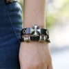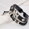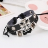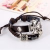 Silver Roman Style Cross Black Adjustable Leather Wristband Bracelet Mens Womens