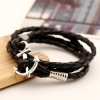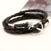 Silver Sailor Anchor Black Leather Wristband Bracelet Mens Womens