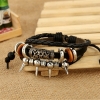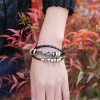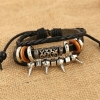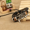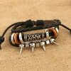 Silver Spikes Rings Black Adjustable Leather Wristband Bracelet Mens Womens Teen