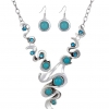 Silver Waves Opal Blue Rhinestone Balls Necklace Earrings Set Costume Jewellery