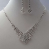 Sparkling Square Crystal Diamante Silver Necklace Earrings Set Costume Jewellery
