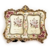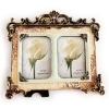 Vintage Relief Gold Swept Pink Rose Flowers Freestanding Double Duo Photo Frame