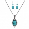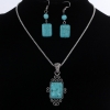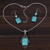 Vintage Style Opal Blue Rhinestones Pendant Silver Necklace And Earrings Set