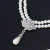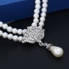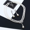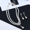 Water Droplets Pendant 2 Layers White Pearls Chain Necklace And Earrings Set