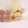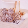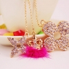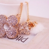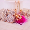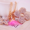 White Clover With Fur Pom Crystal Diamante Bag Charms Handbag Keyrings Pendant