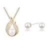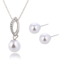 White Pearls Crystal Diamante Silver Necklace And Earrings Set Costume Jewellery
