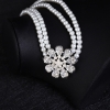White Pearls Flower Crystal Diamante Necklace And Earrings Set Costume Jewellery