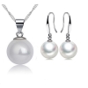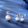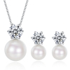 White Pearls Silver Crystal Necklace And Earrings Set Women Costume Jewellery