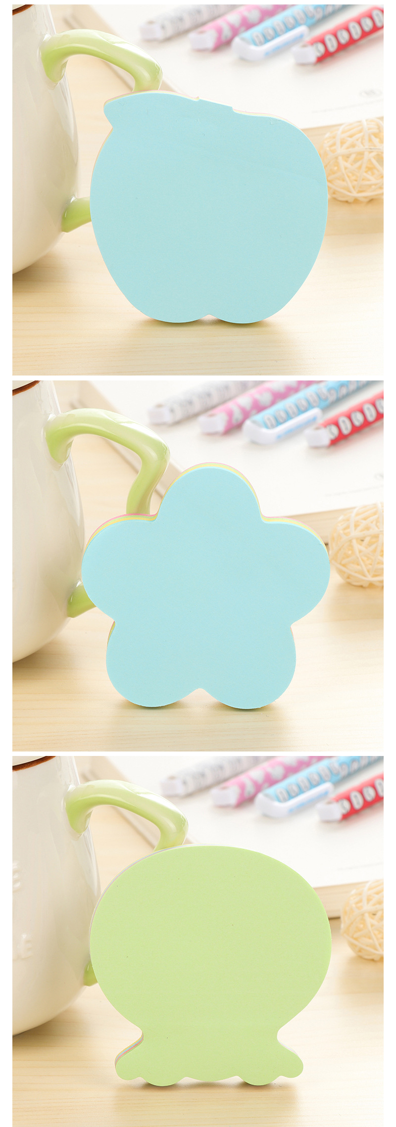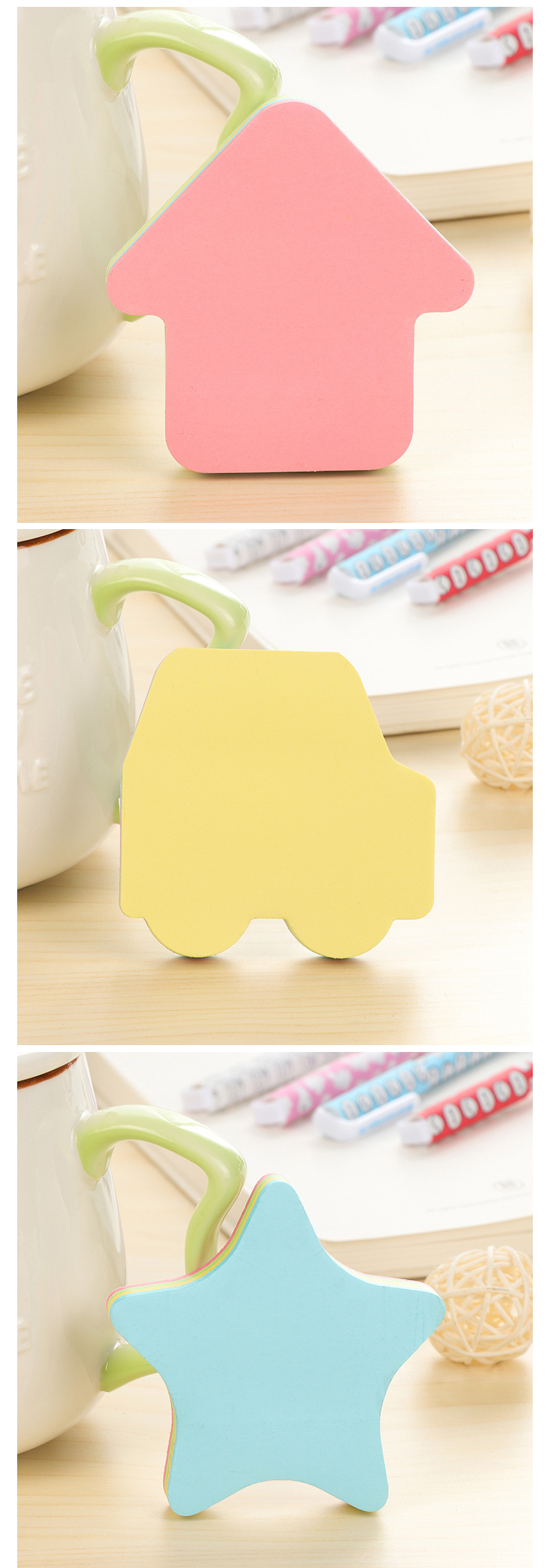 Details:100 Sheets Colourful Vegetables Fruits Love Heart Star Car Shapes Sticky Notes