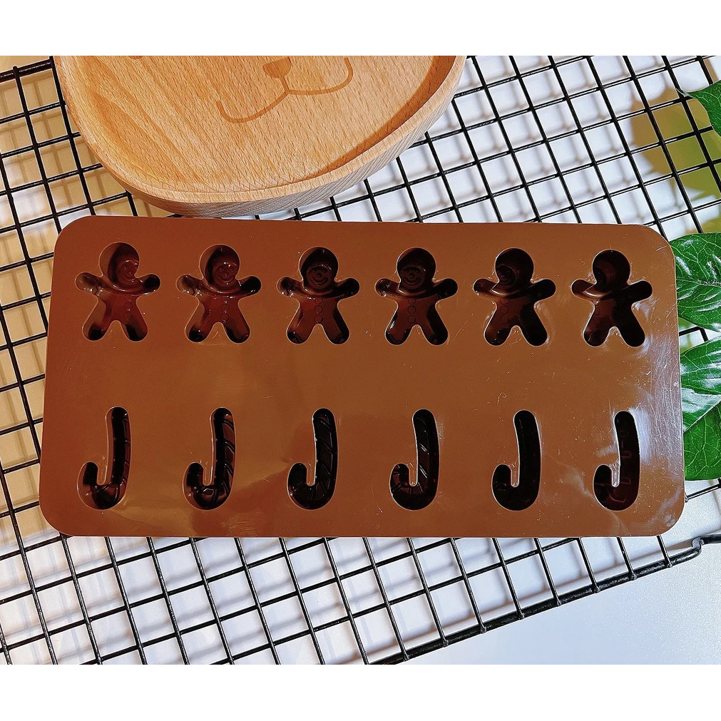 12 Gingerbread Man Candy Cane Silicone Mould Chocolate Fondant Jelly Ice Cube