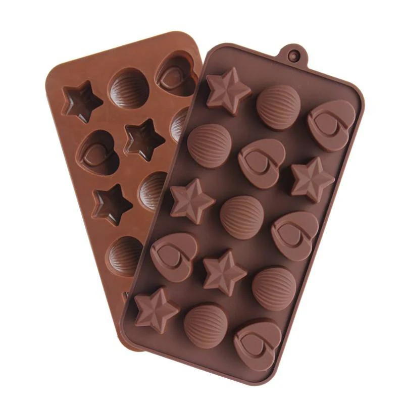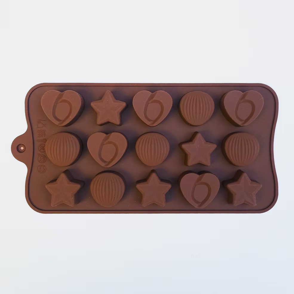 Details:15 Hearts Stars Shells Silicone Mould Chocolate Fondant Jelly Ice Cube Mold
