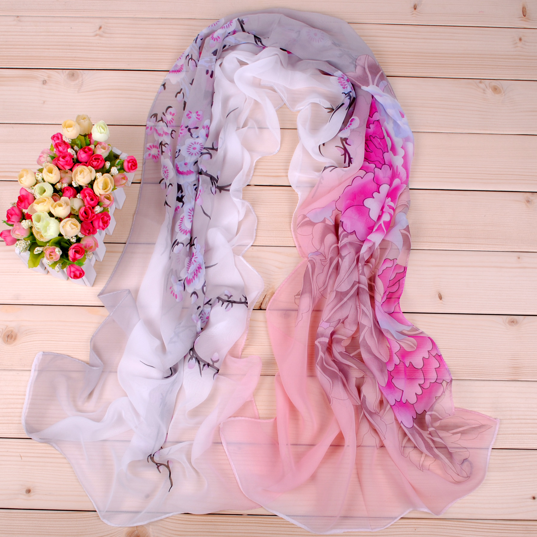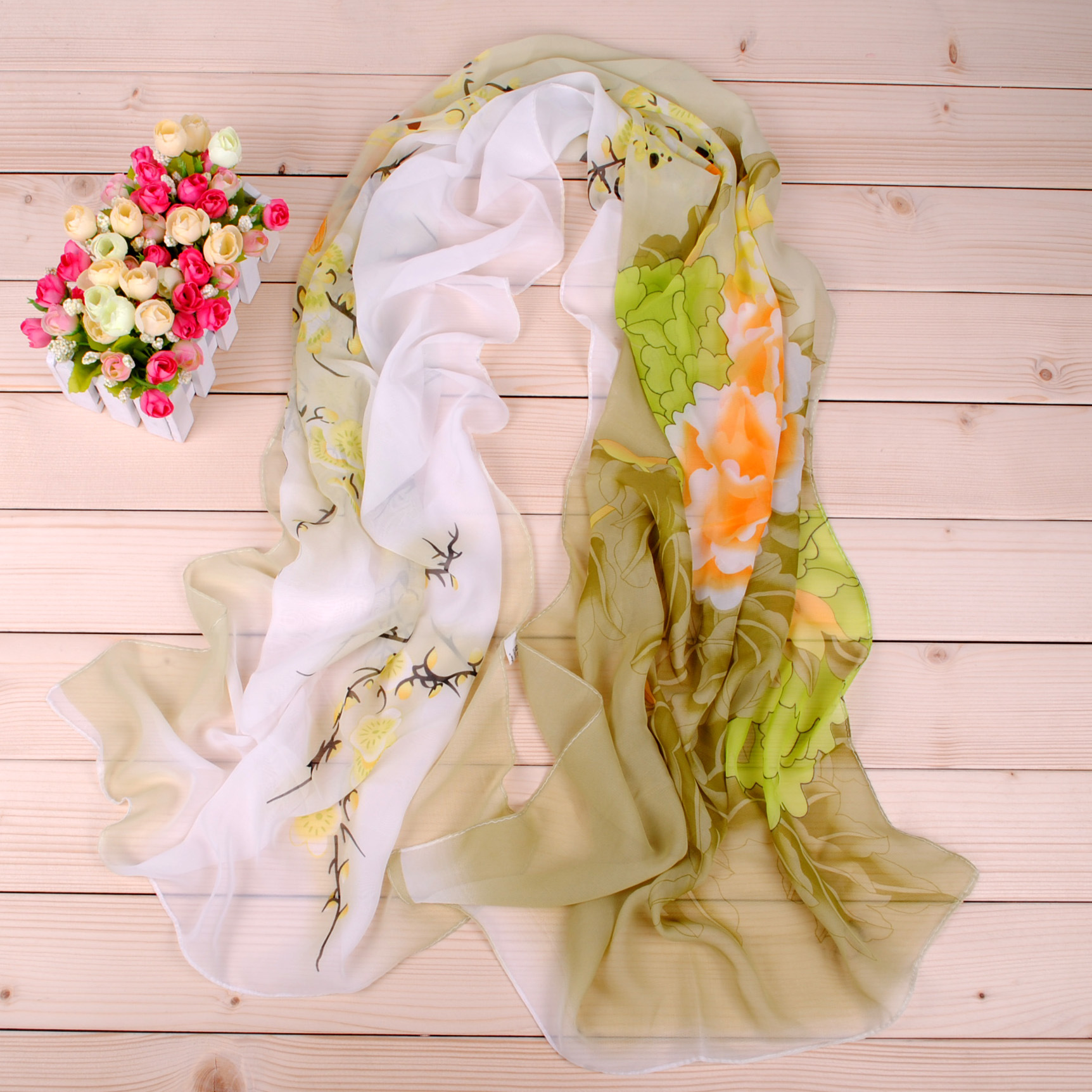 160 50cm Birds Flowers Print X020 Fashion Floral Ladies Scarves Chiffon Scarf Womens Shawls