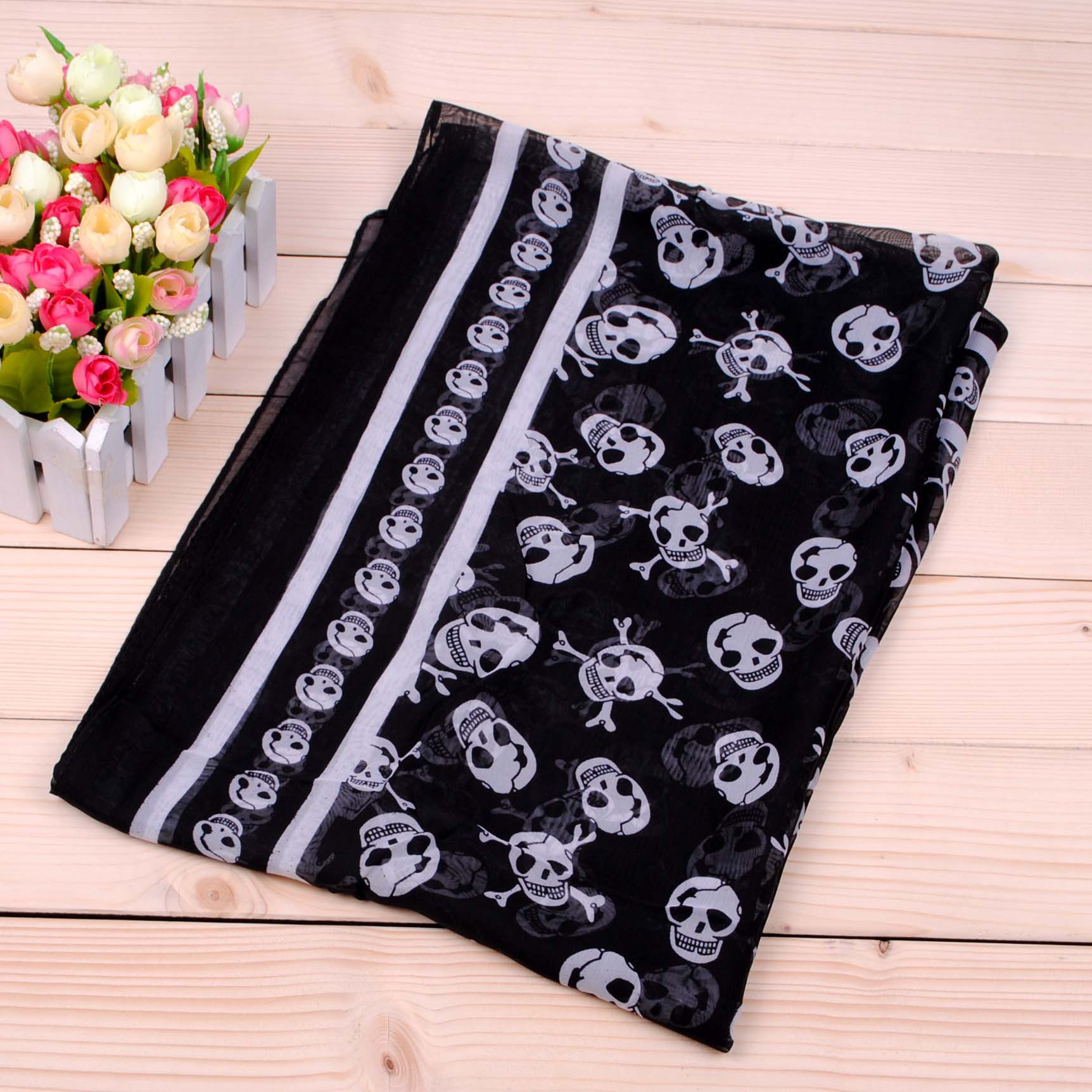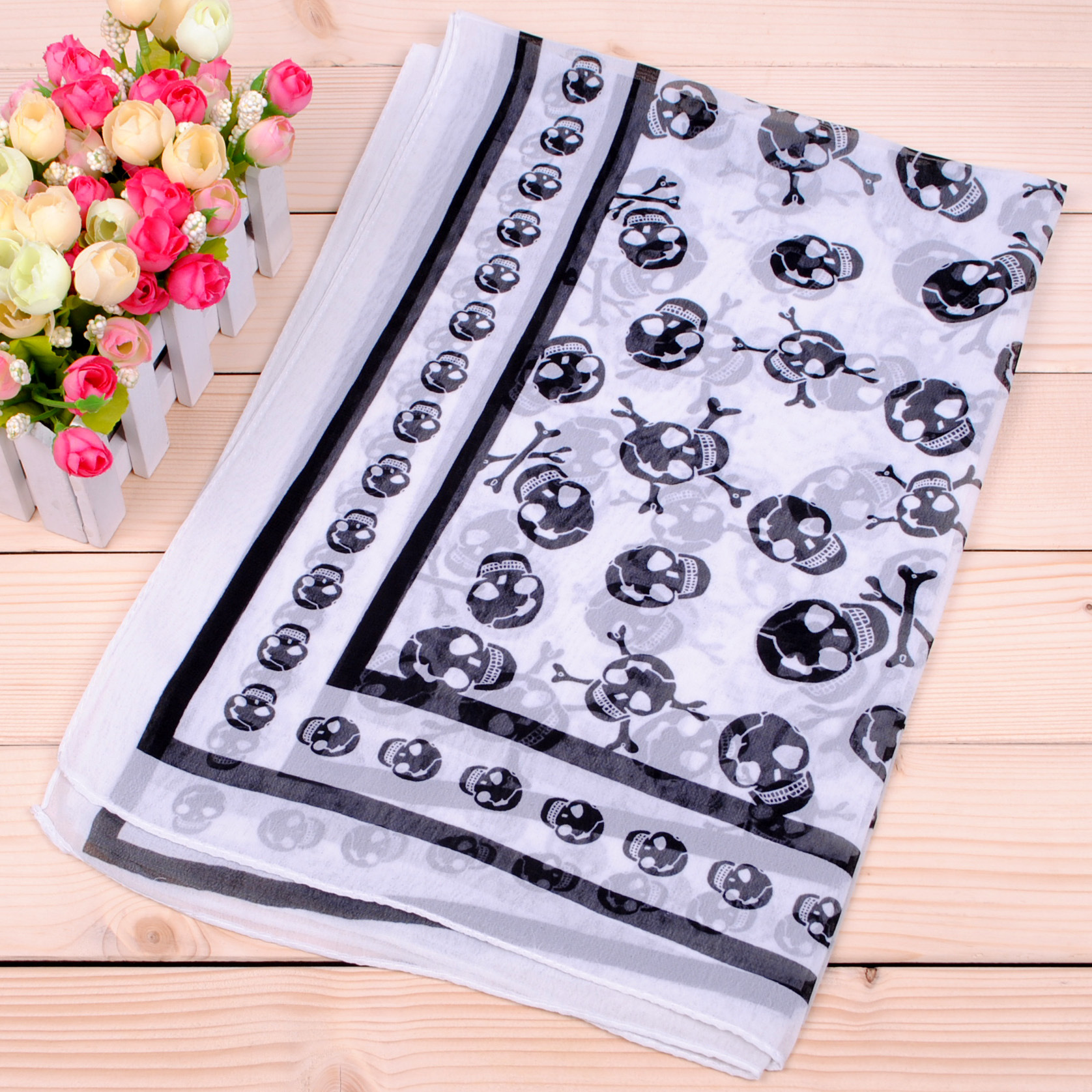 160 50cm Black White Skulls X030 Fashion Ladies Scarves Chiffon Scarf Womens Shawls