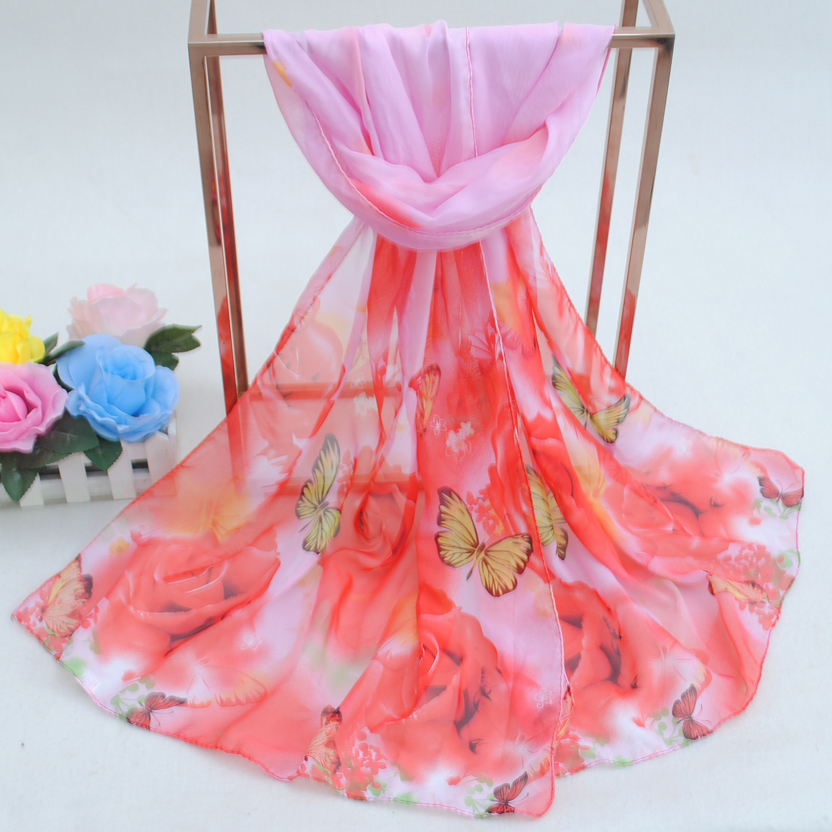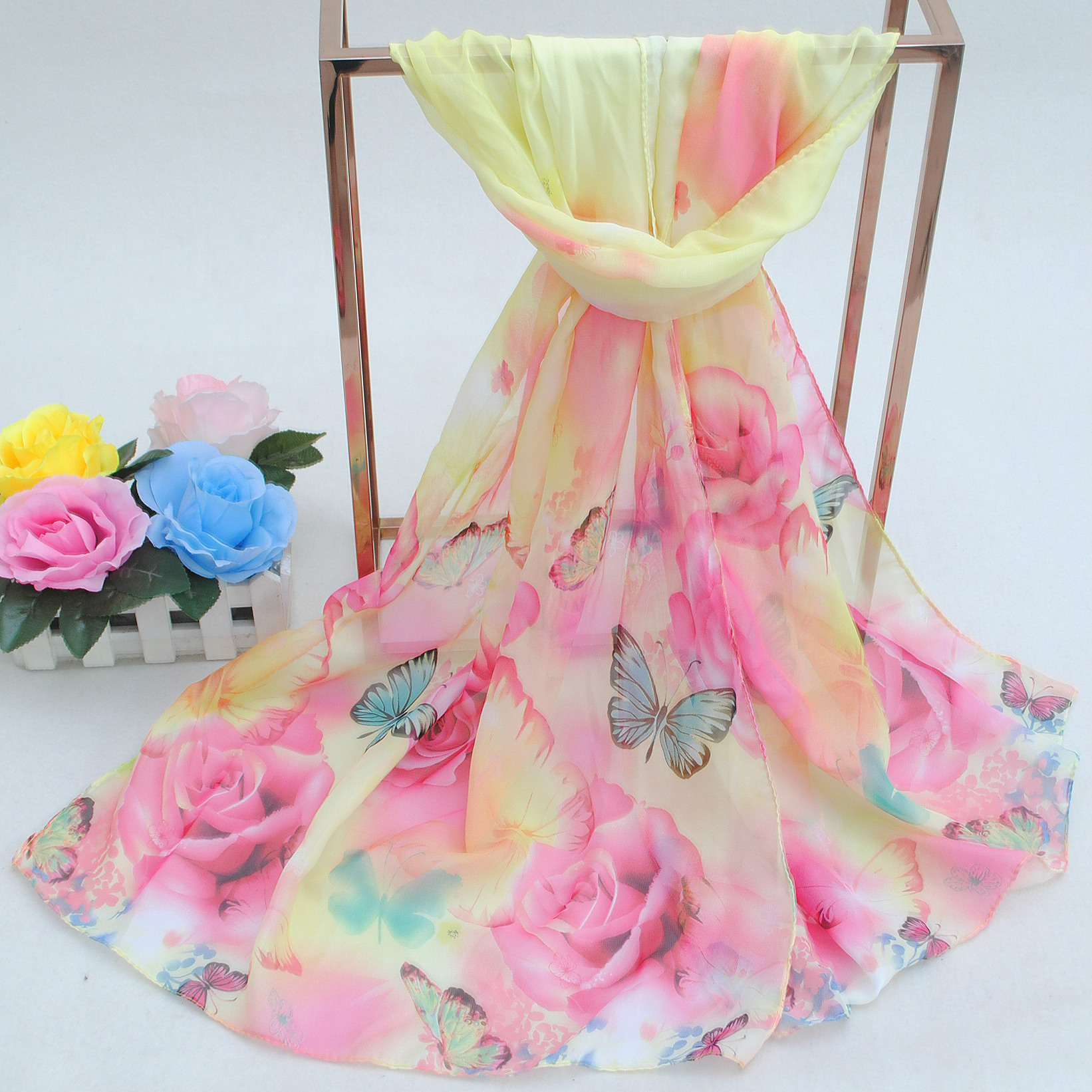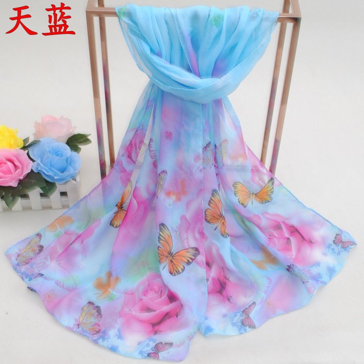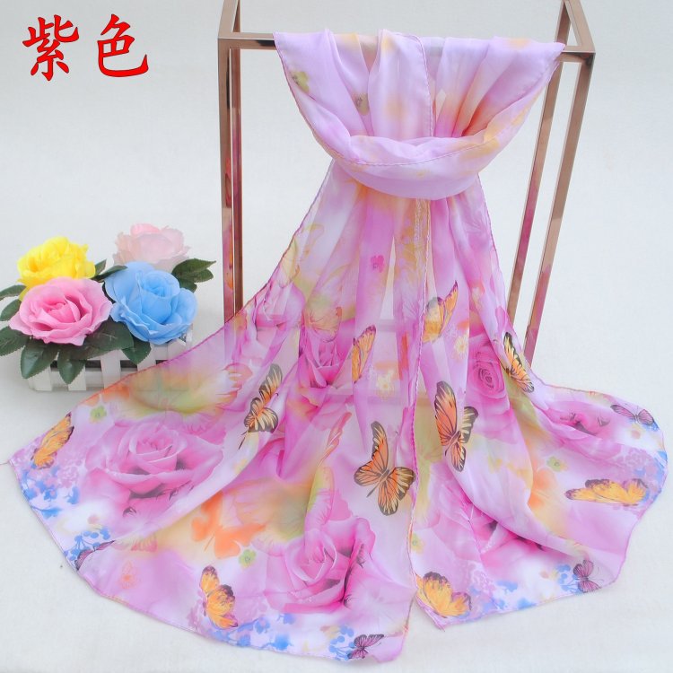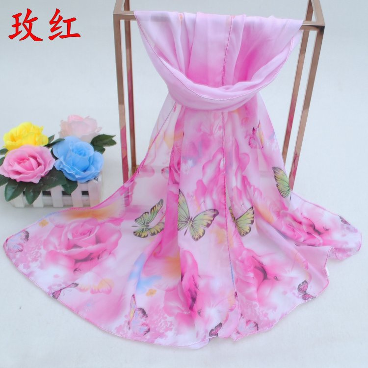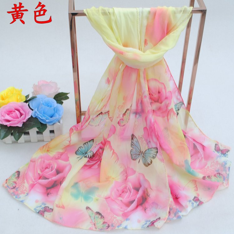 160 50cm Butterfly And Rose Flowers Floral X258 Fashion Ladies Scarves Chiffon Scarf Womens Shawls