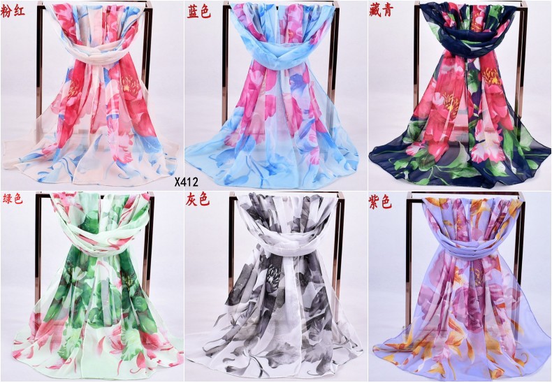 160 50cm Flower Floral Fashion Ladies Scarves Chiffon Scarf Womens Shawls X412