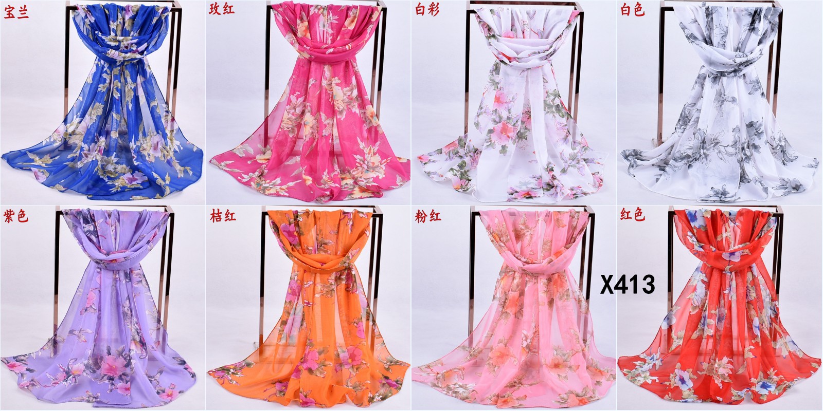 160 50cm Flower Floral Fashion Ladies Scarves Chiffon Scarf Womens Shawls X413