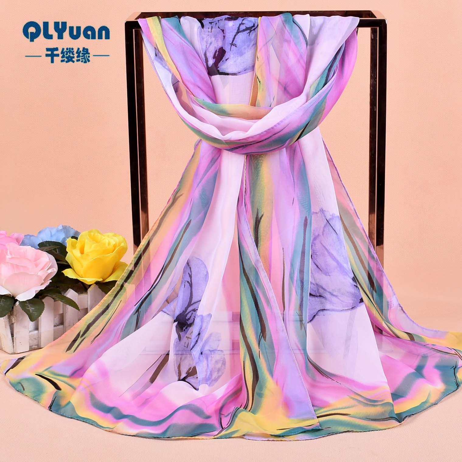 Name: Flowers Chiffon Scarf X311