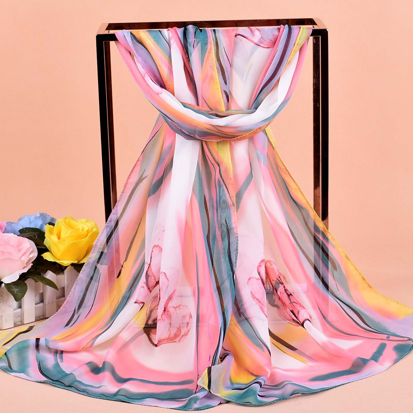 160 50cm Flowers Print X311 Fashion Ladies Scarves Chiffon Scarf Womens Shawls