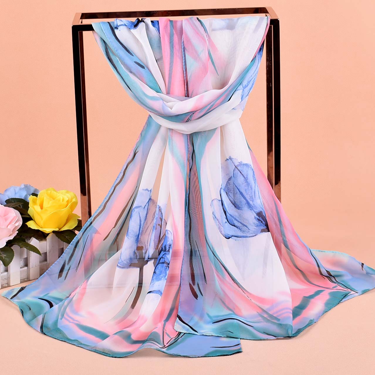 Details:160 50cm Flowers Print X311 Fashion Ladies Scarves Chiffon Scarf Womens Shawls
